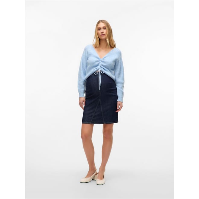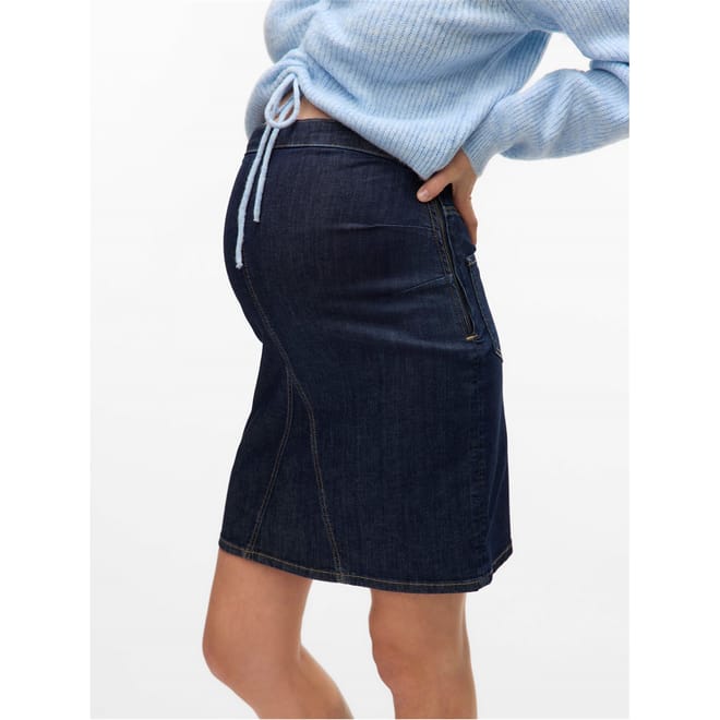 Discover the Mamalicious knee-length skirt, a perfect addition to your casual collection. This regular fit skirt features a side zipper closure for easy wear. Designed with a 5-pocket style, it includes front and back pockets, along with stylish stitching and zipped side pockets, offering both functionality and a modern look. -