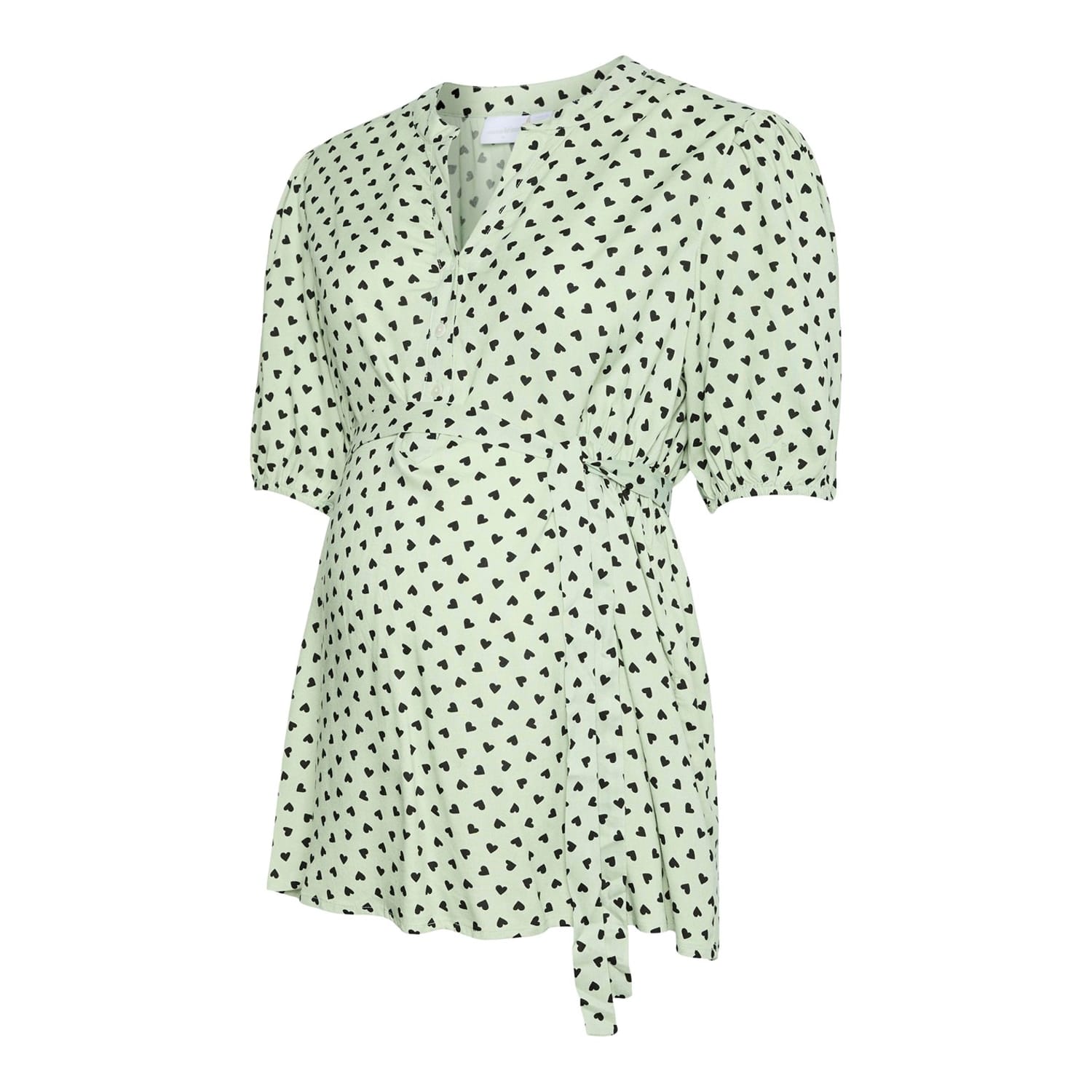 This Mamalicious top features a regular fit with a notched neckline, offering a stylish yet comfortable look. The three-quarter puff sleeves are complemented by elasticated cuffs, adding a touch of elegance to the design. -