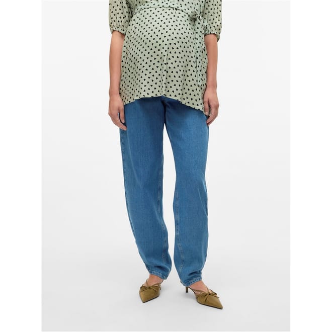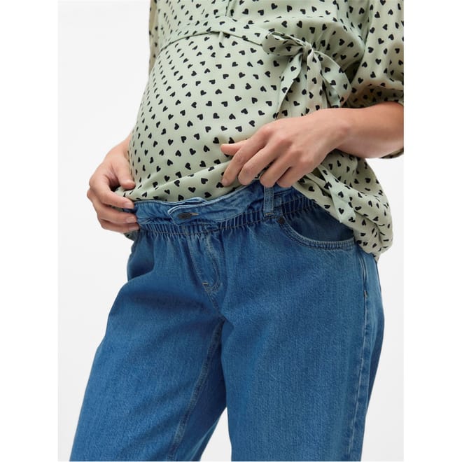 Discover the relaxed fit of Mamalicious mom jeans, designed with a zip fly, front button, and elasticated waistband for comfort. These jeans feature multiple pockets, including front, back, coin, and waist pockets, enhanced by detailed stitching. Perfect for those seeking both style and practicality in their denim collection. -