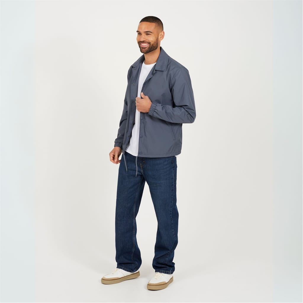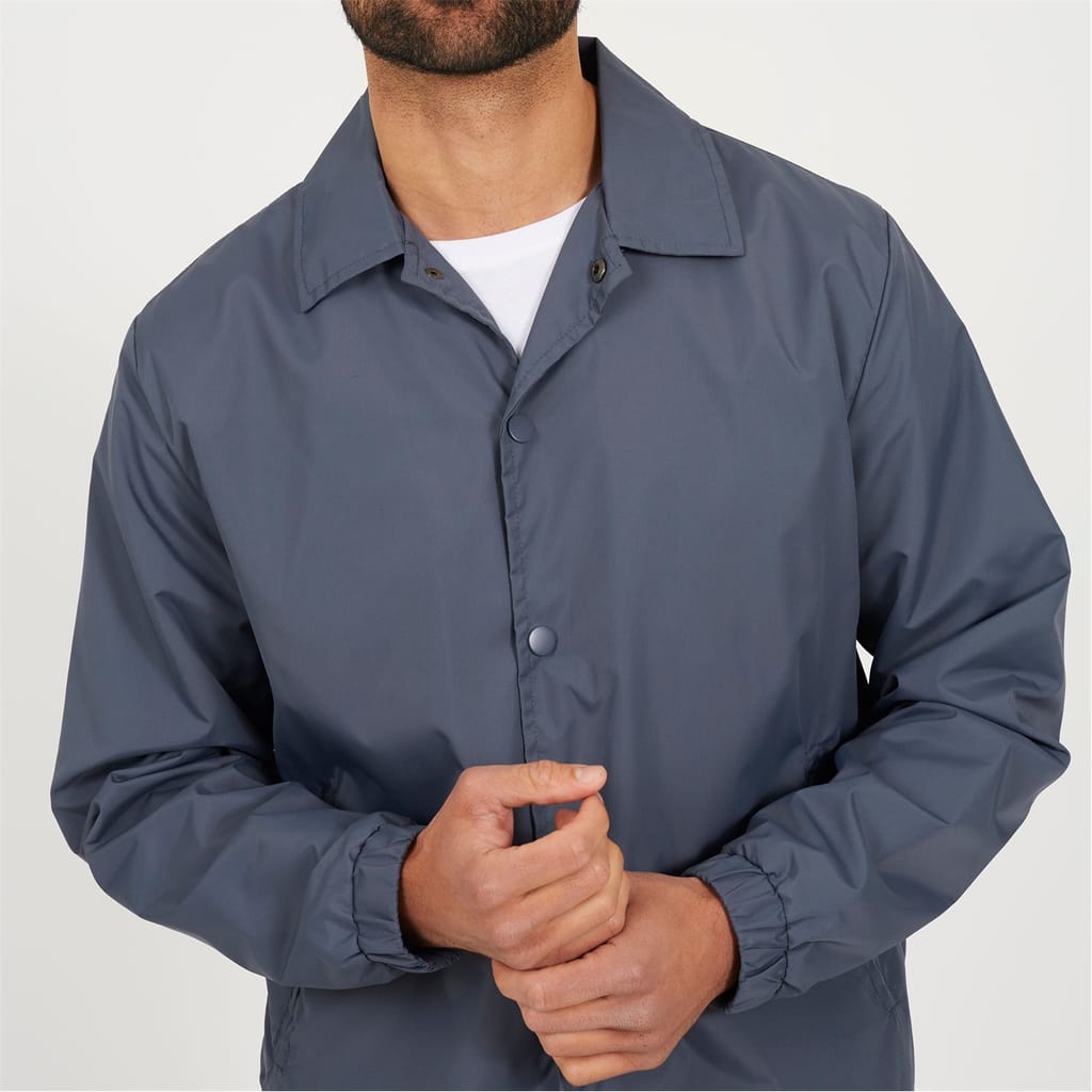 Brave Soul Men’s Lightweight Coach Jacket. Lightweight classic coach jacket with central popper stud fastening, two lower welt pockets. Shoelace drawcord hem, and elasticated cuffs. -