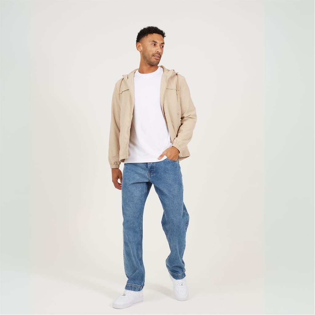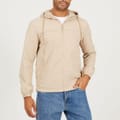Brave Soul Men’s Wind Runner Jacket. Stone wind runner jacket. Fixed hood with adjustable drawcords. Two lower zip pockets and elasticated cuffs. -