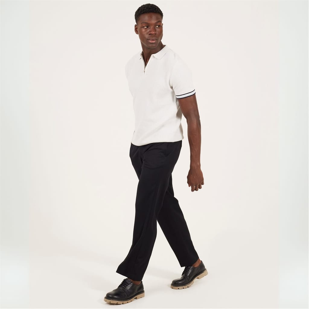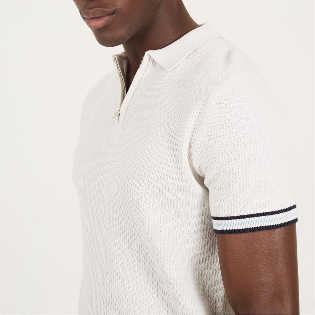 Brave Soul Men’s Ecru Polo Neck. Ecru polo neck with concealed 1/4 zip fastening. Ribbed collar, cuffs and hem with contrast colour tipping, all-over rib knit detail, and set-in sleeves. -