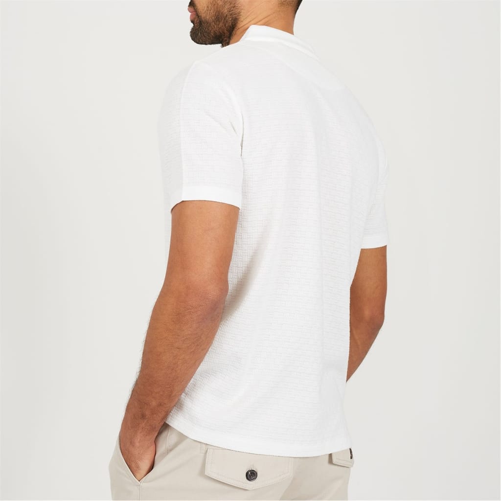 Brave Soul Men’s Cream Short-Sleeved Shirt. Cream button-through shirt with pearl-effect buttons and an all-over jacquard knit. -