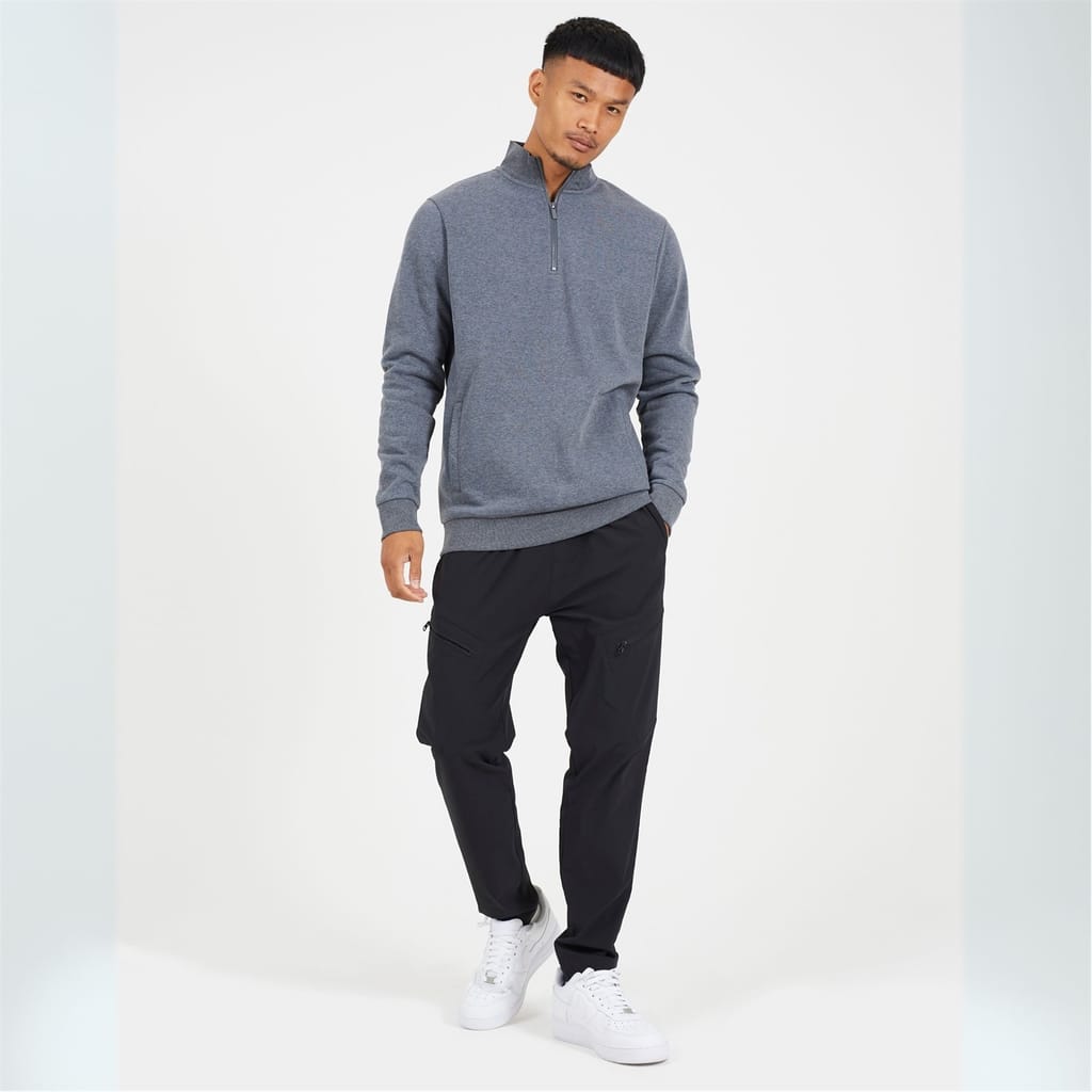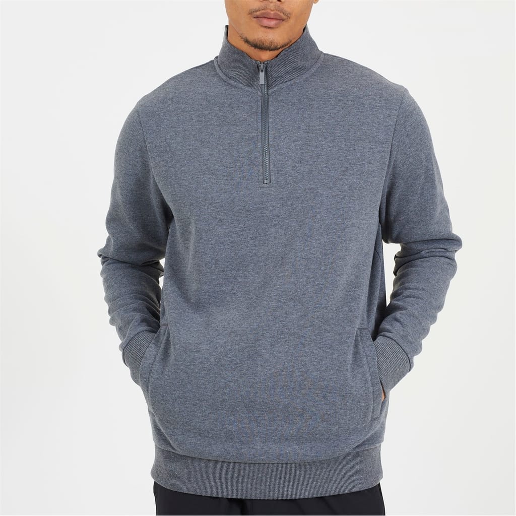 Brave Soul Men’s Quarter-Zip Funnel Neck Sweatshirt. Charcoal brushed back fleece sweatshirt with quarter zip fastening. Ribbed collar, hem and cuffs. Two welt pockets at the waist. -