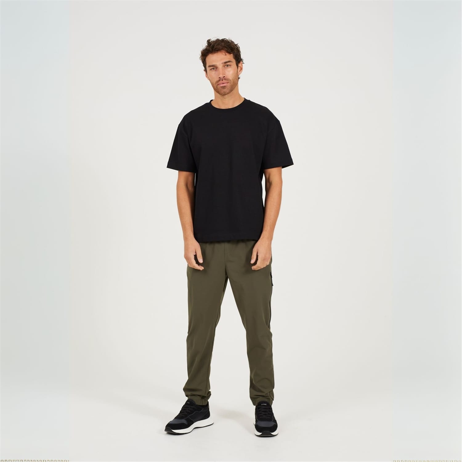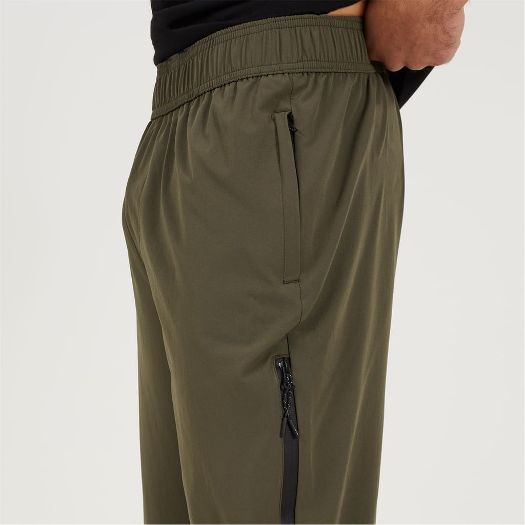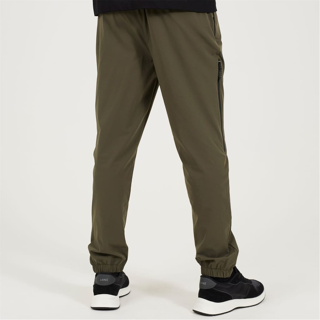 Brave Soul Men’s Khaki Tech Pants .Khaki pants with elasticated waist and hem cuffs. Two waist pockets, two leg seam long zip pockets. -