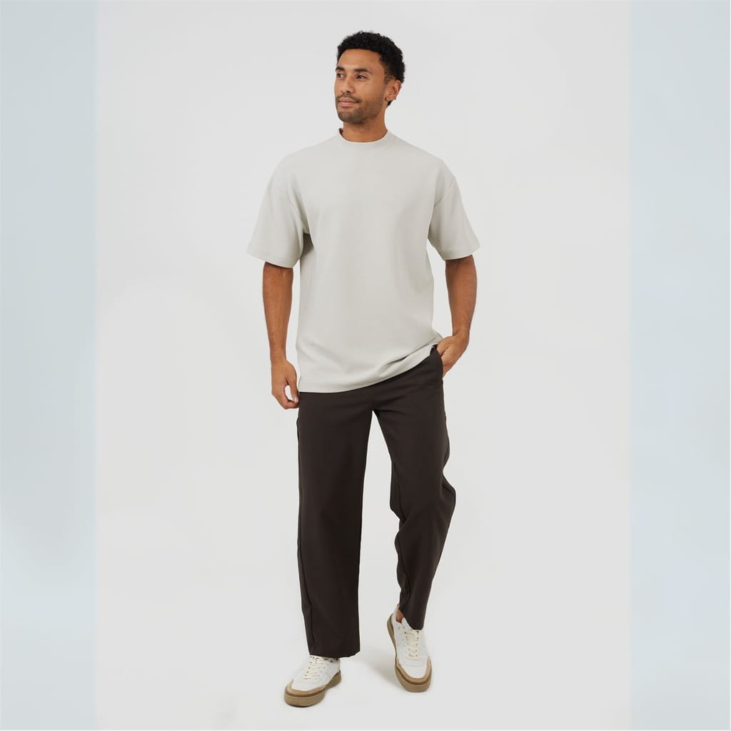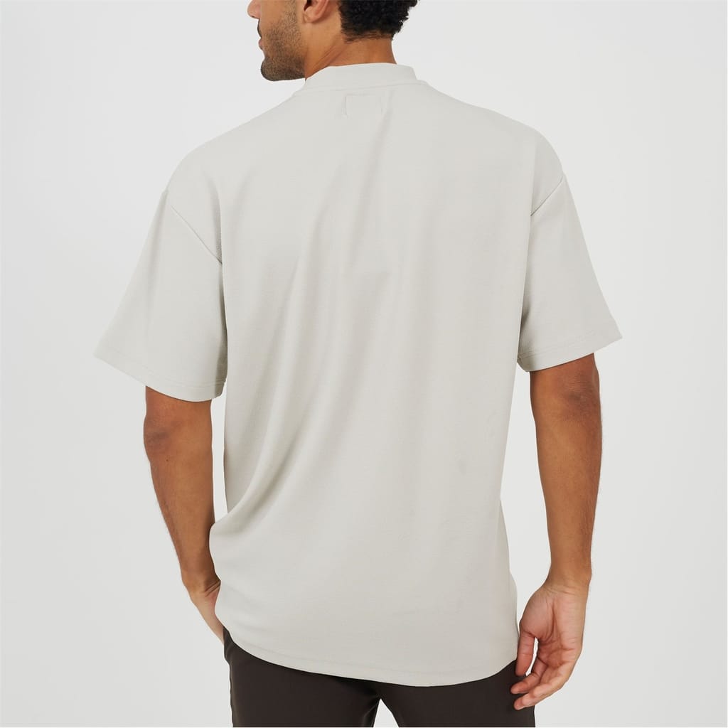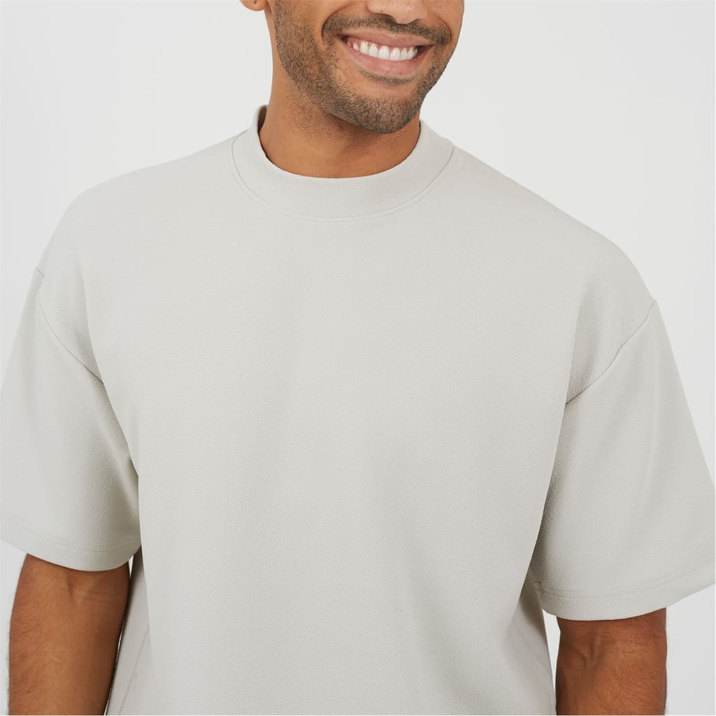 Brave Soul Men’s Grey Relaxed-Fit Mock Turtle Neck T-Shirt. Grey short-sleeve, relaxed-fit T-shirt with mock turtle neck and drop shoulders. -