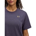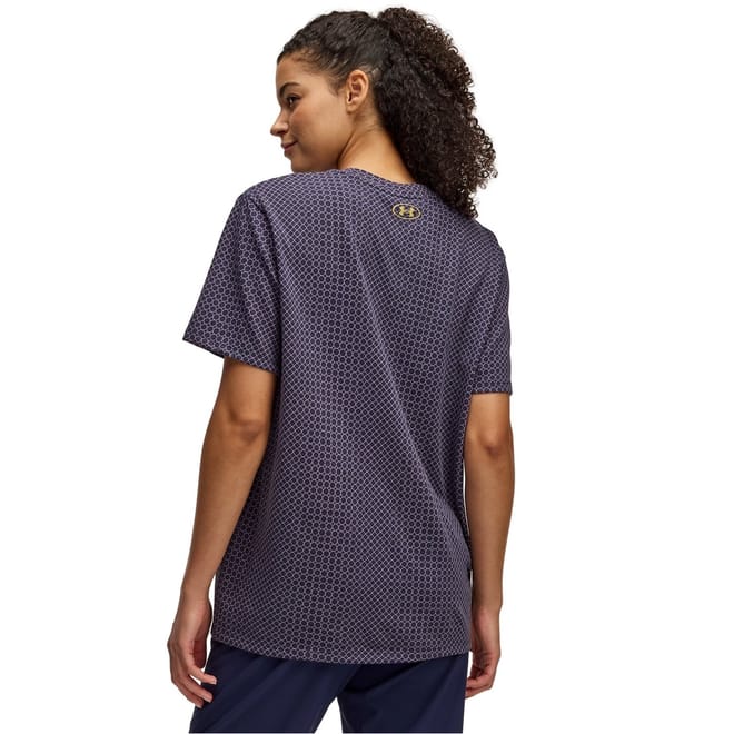 This Under Armour top features a cropped length and a crew neck, offering a regular fit. The short sleeves and geometric pattern add a modern touch to this stylish piece. -