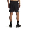 Under Armour shorts are designed for both sporting activity and casual wear. These solid basketball shorts feature a drawstring closure for a secure fit. The logo embellishment adds a touch of brand identity, making them a versatile choice for various occasions. -