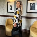 Take your outfit to the next level with our Multi Geometric Printed Long Sleeve Top. Featuring long sleeves with elasticated cuffs, a round neckline and loop button fastening behind the neck. Made from a gorgeous lightweight material with a loose silhouette design. Style with black jeans for a casual everyday look or black tailored trousers for a smart office look.
