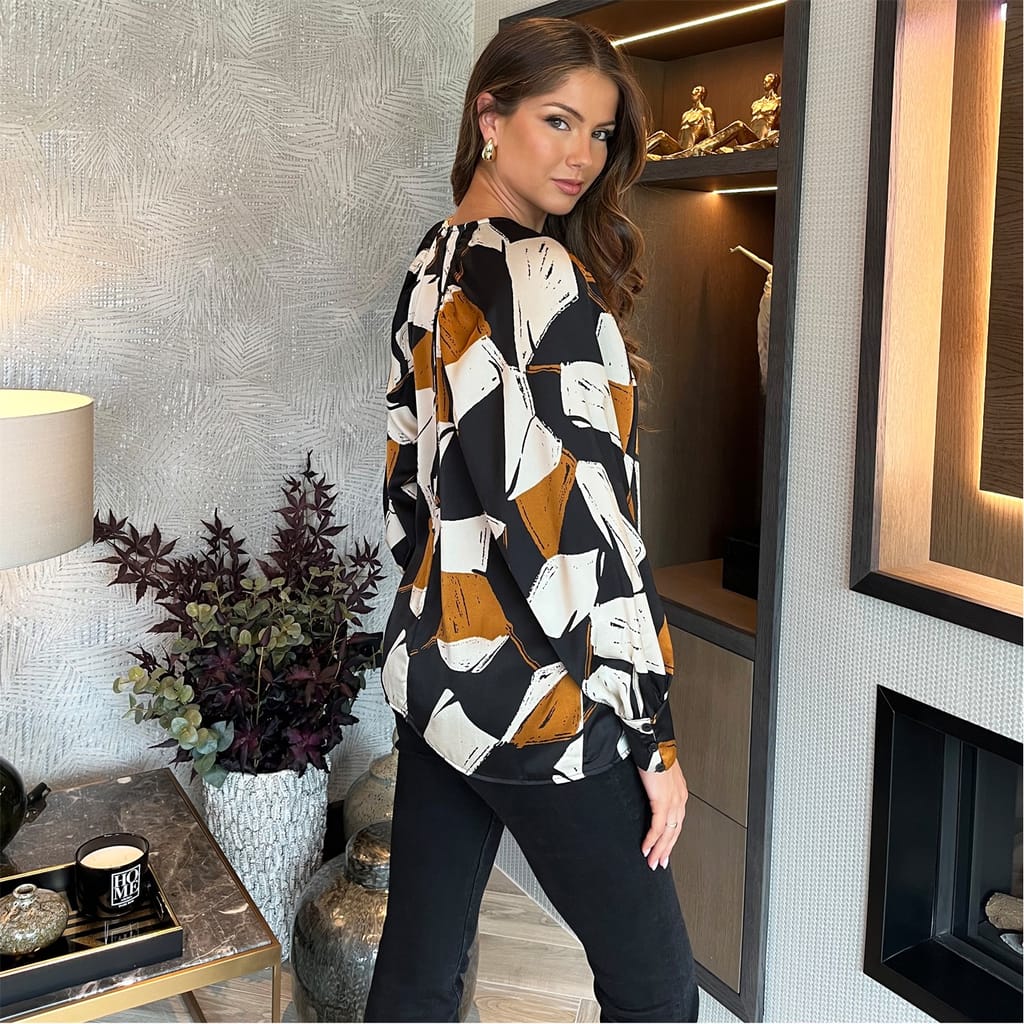 Our Multi Geometric Print Long Sleeve Top is so versatile! Featuring a round neckline, long sleeves, button fastened cuffs, and a button fastening at the back neck. Simply pair with your favourite jeans to complete the look!