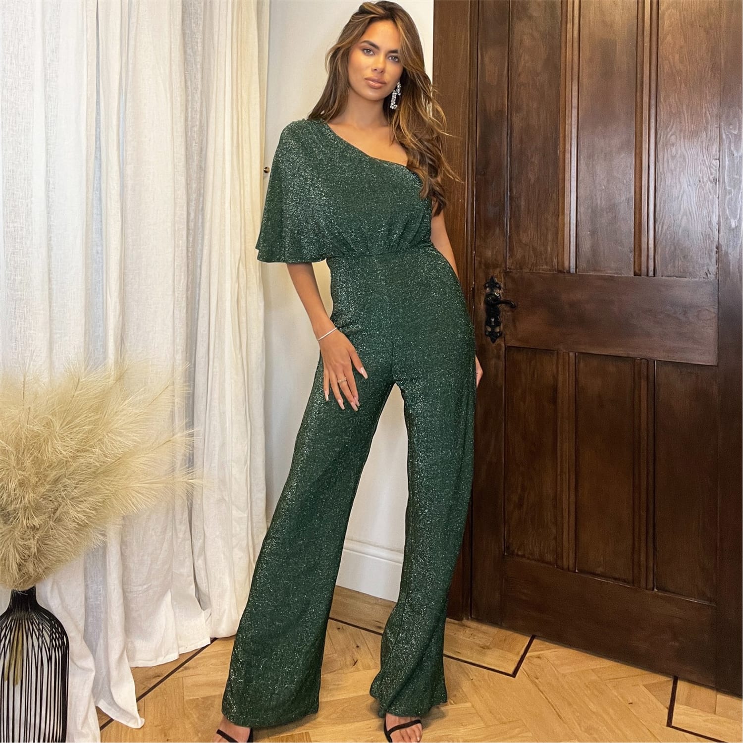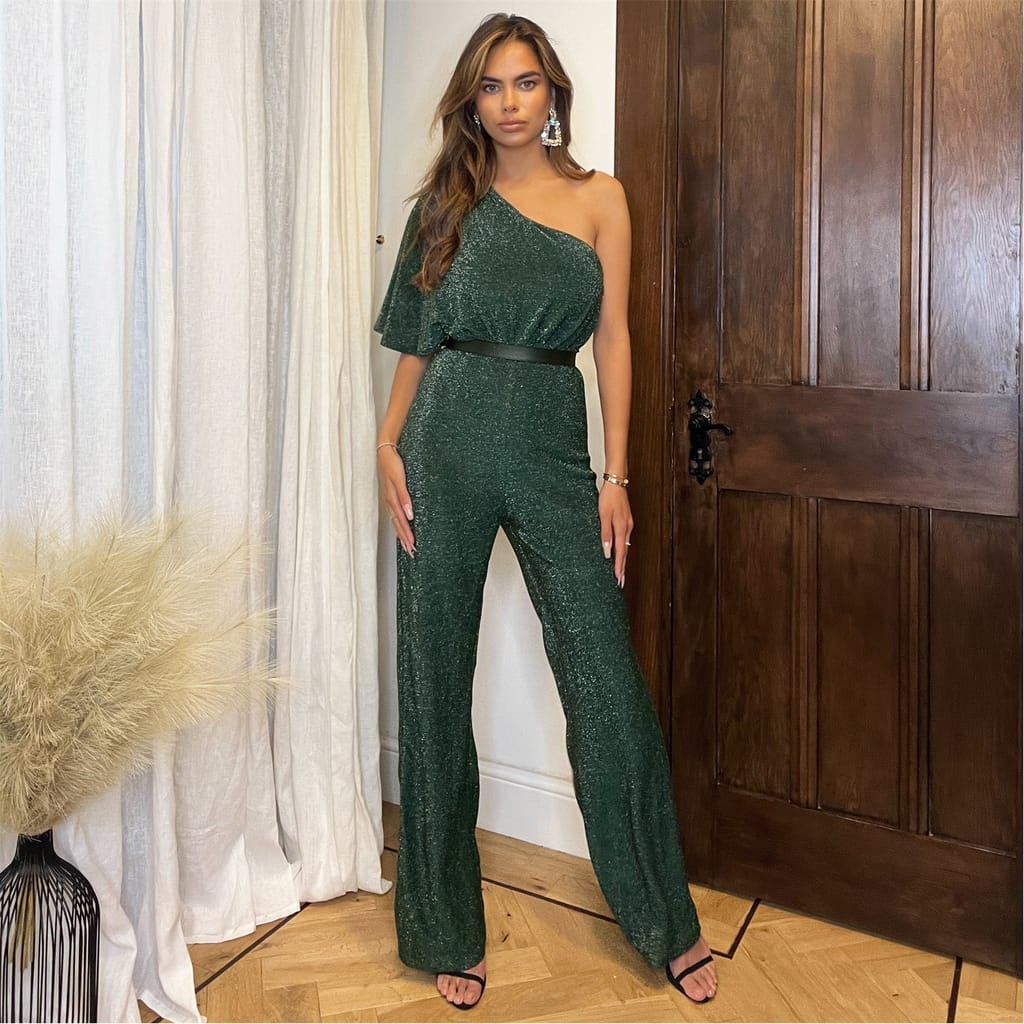 AX Paris Metallic One Shoulder Wide Leg Jumpsuit