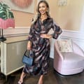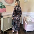 Stay on trend with this Multi Abstract Print 3/4 Sleeve Shirt Midi Dress. Featuring 3/4 length cuffed sleeves, this style has a classic collar, button front top with side gathering on the waist, an elasticated waist back and a midi length skirt with side splits. Style with flats or heels and add some sophisticated jewellery for a chic evening look.