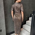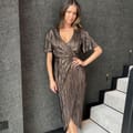 Our Bronze Plisse Buckle Detail Wrap Midi Dress is this season's must have. Featuring our premium plisse fabric, a wrap top and wrap midi skirt, O-ring detail and flutter sleeves. Pair with some cute heels and a matching bag for a stunning party look.