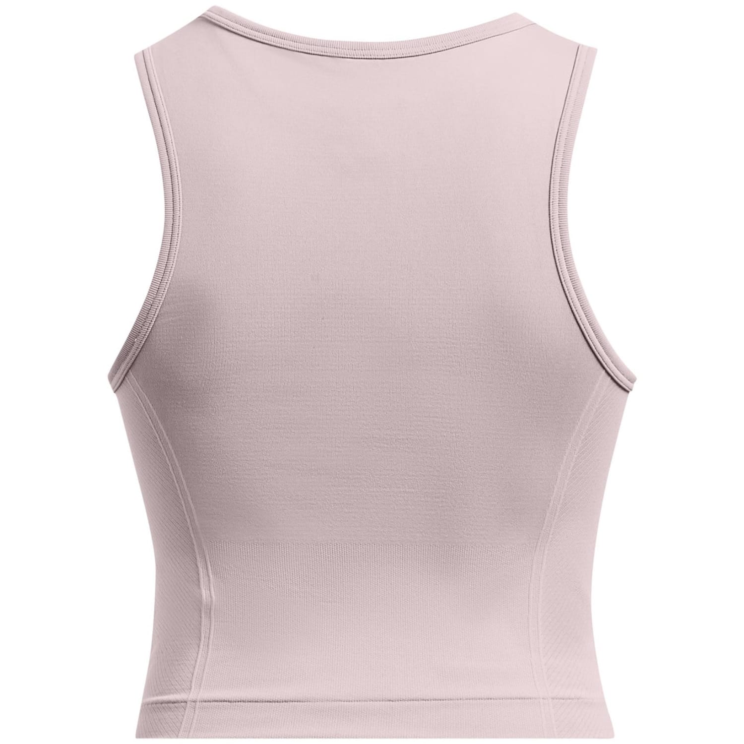 Discover the Under Armour top, designed for performance with a seamless construction. This sleeveless piece features a crew neck and a solid pattern, offering a sleek, slim fit. Ideal for those seeking a blend of style and functionality. -