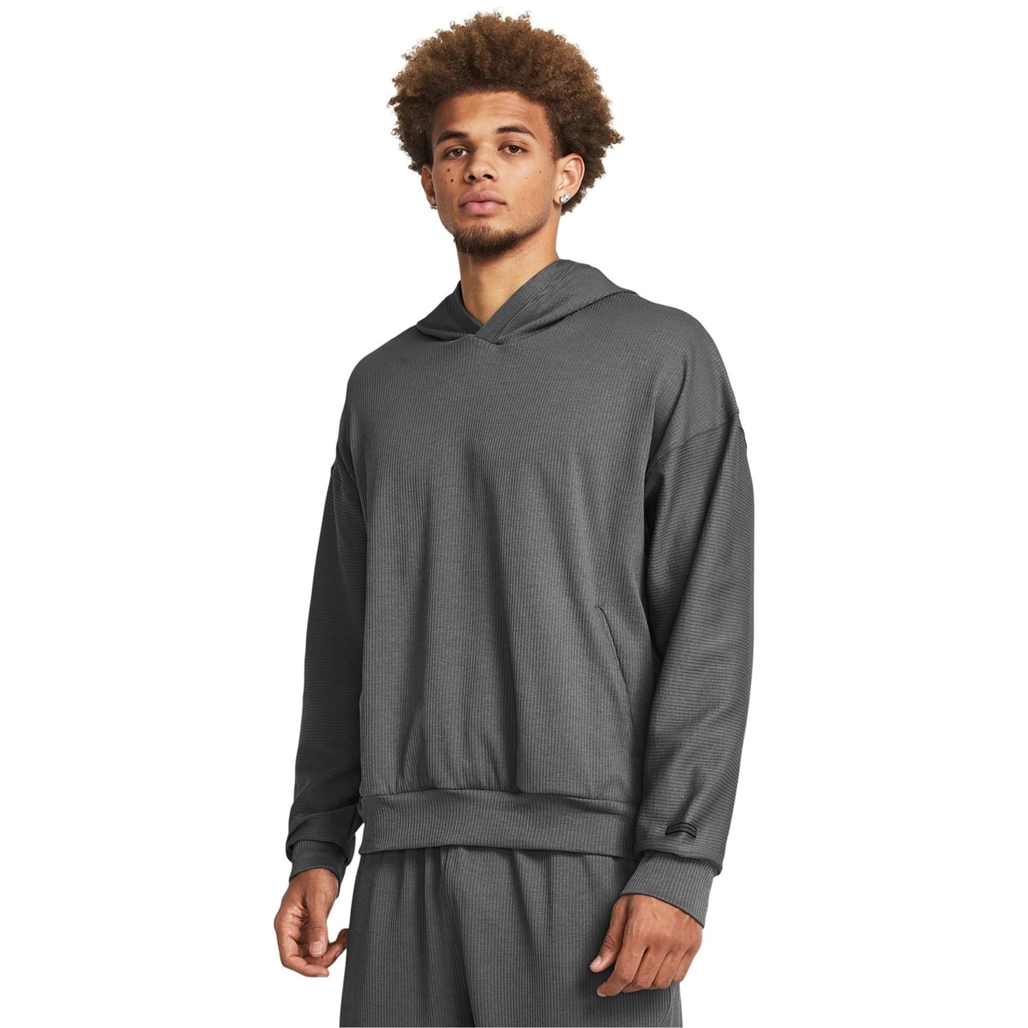 Discover Under Armour's ribbed top, featuring a hooded neck and long sleeves with a drop shoulder design. This relaxed fit piece is crafted with ribbed cuffs, offering both style and comfort. -