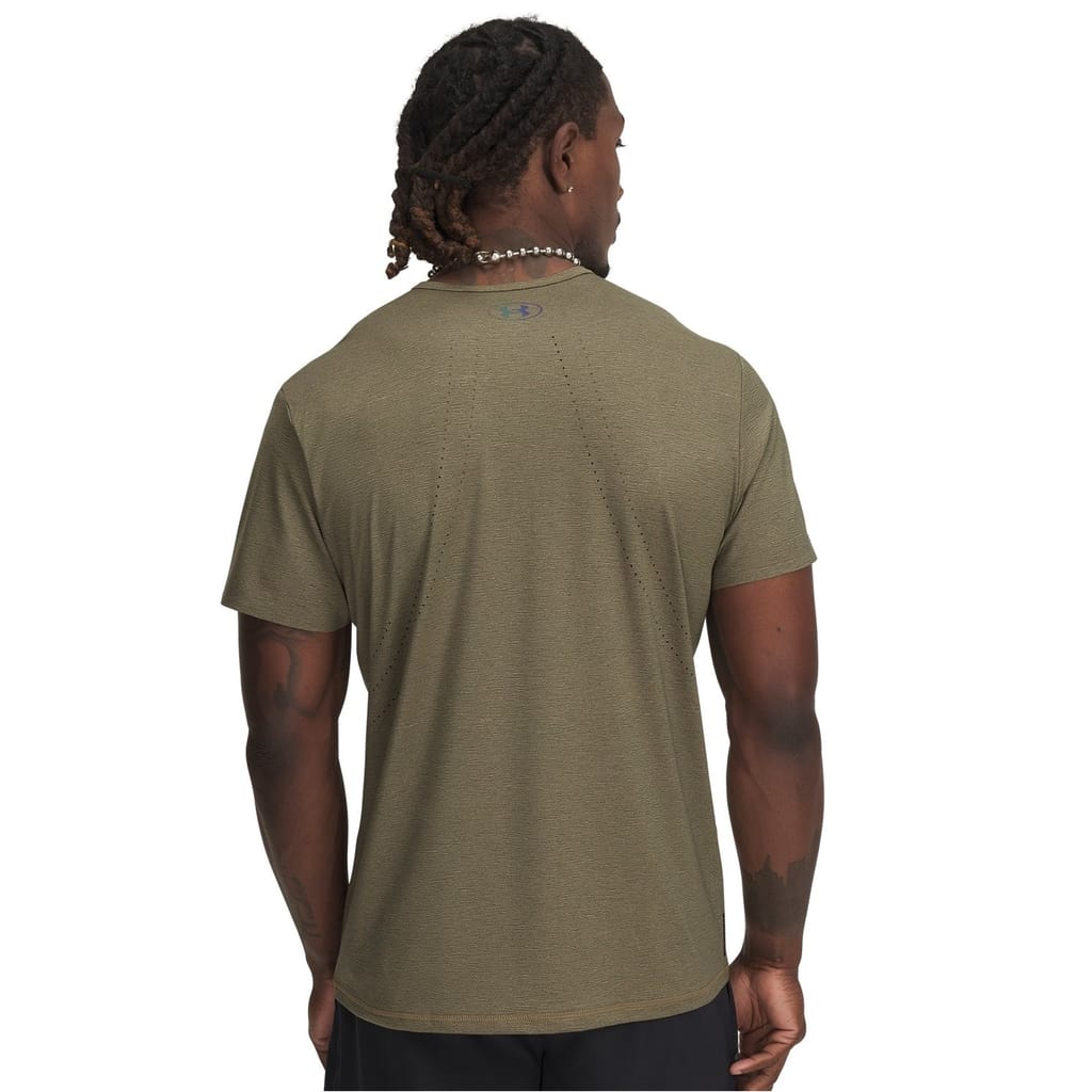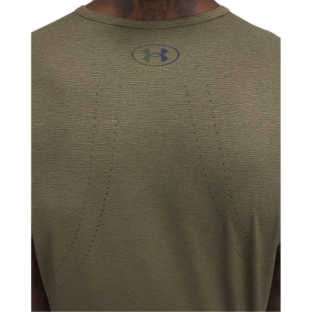 The Under Armour Vanish top is designed for gym and activewear collections, offering performance features. This solid top features a crew neck and short sleeves, providing a regular fit for comfort during workouts. -