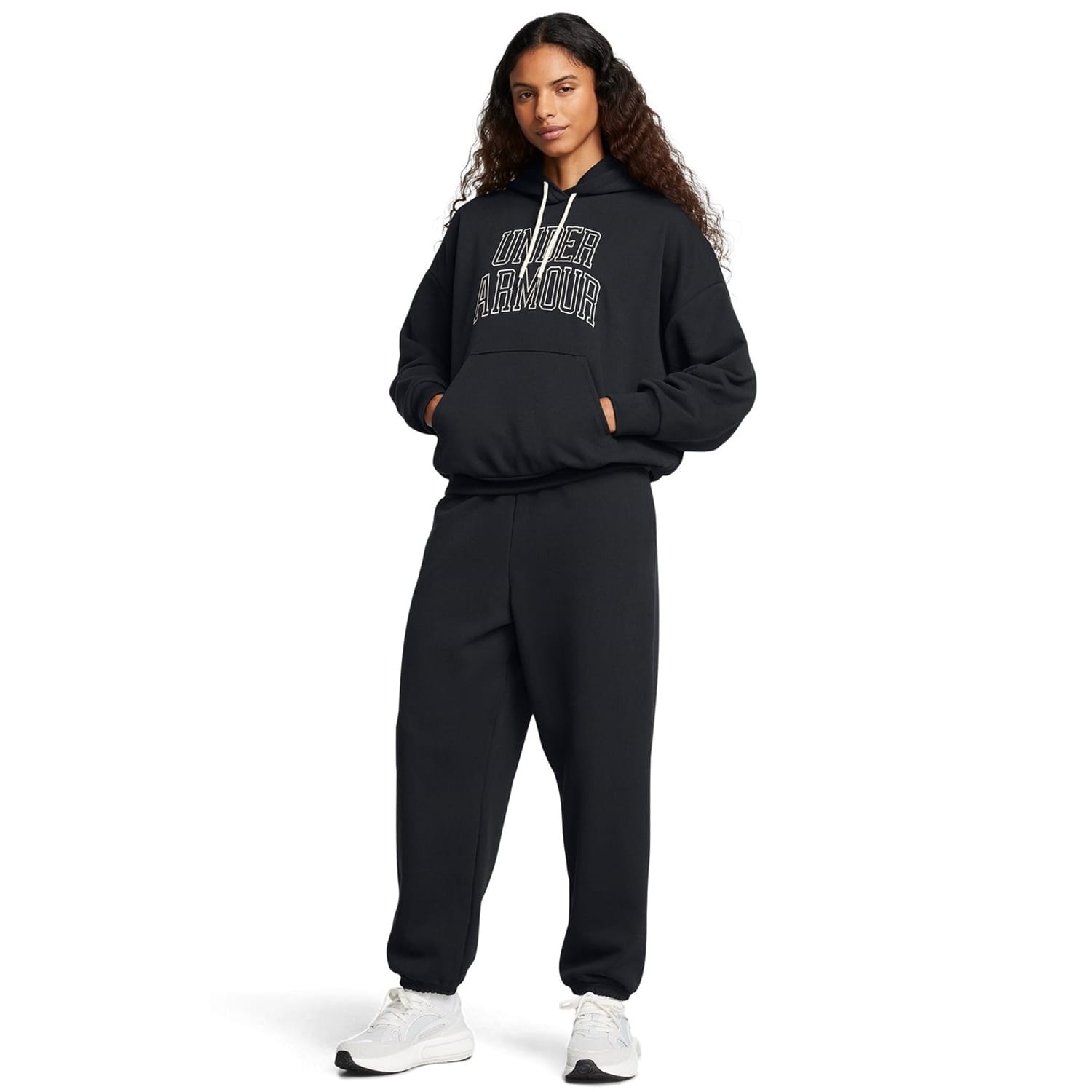 Discover the Under Armour top, featuring a hooded neck and long sleeves with a drop shoulder design. This solid pattern piece offers an oversized fit, complemented by ribbed cuffs for added comfort and style. -