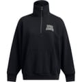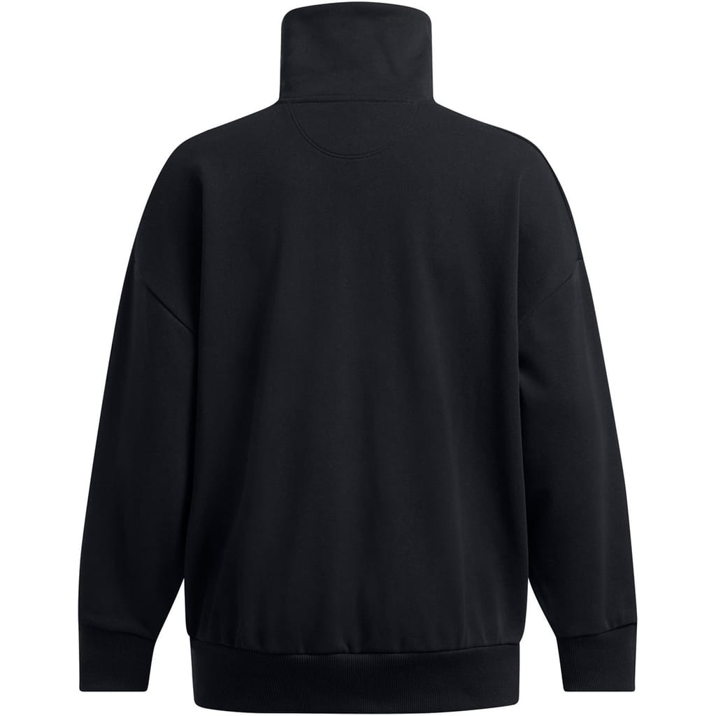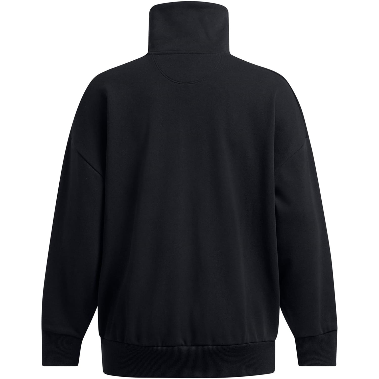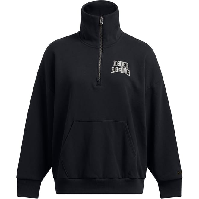 This Under Armour top features a hooded neck and a convenient zipper closure. Designed with long sleeves and a drop shoulder style, it offers an oversized fit for a relaxed look. The solid pattern adds a classic touch, while ribbed cuffs provide a snug finish. -