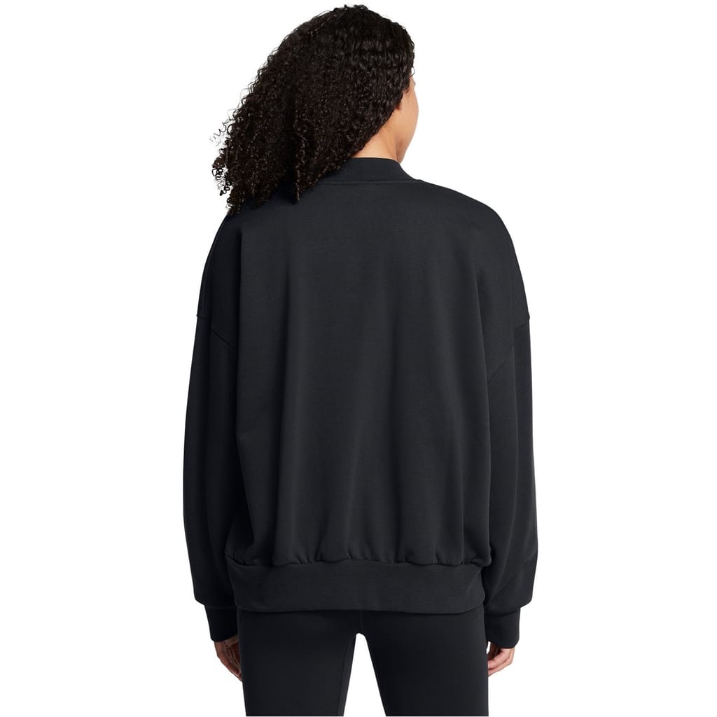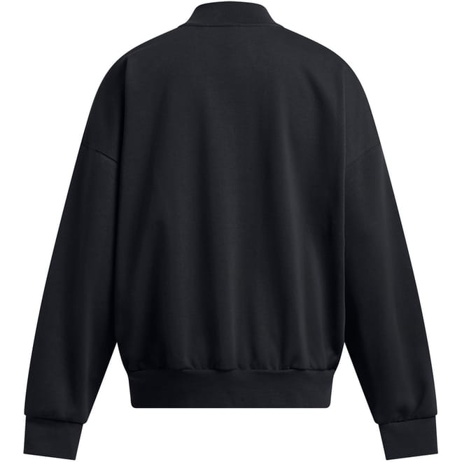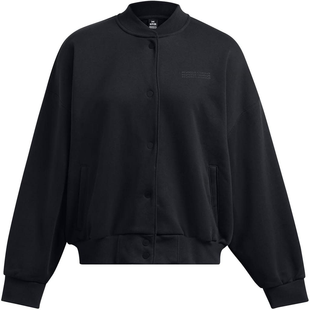 Under Armour's Women's Fleece Varsity Bomber Jacket features athletic styling with a contemporary shape. The classic bomber design showcases ribbed trims and a full-zip front, while the lightweight build offers lightweight insulation for daily use.