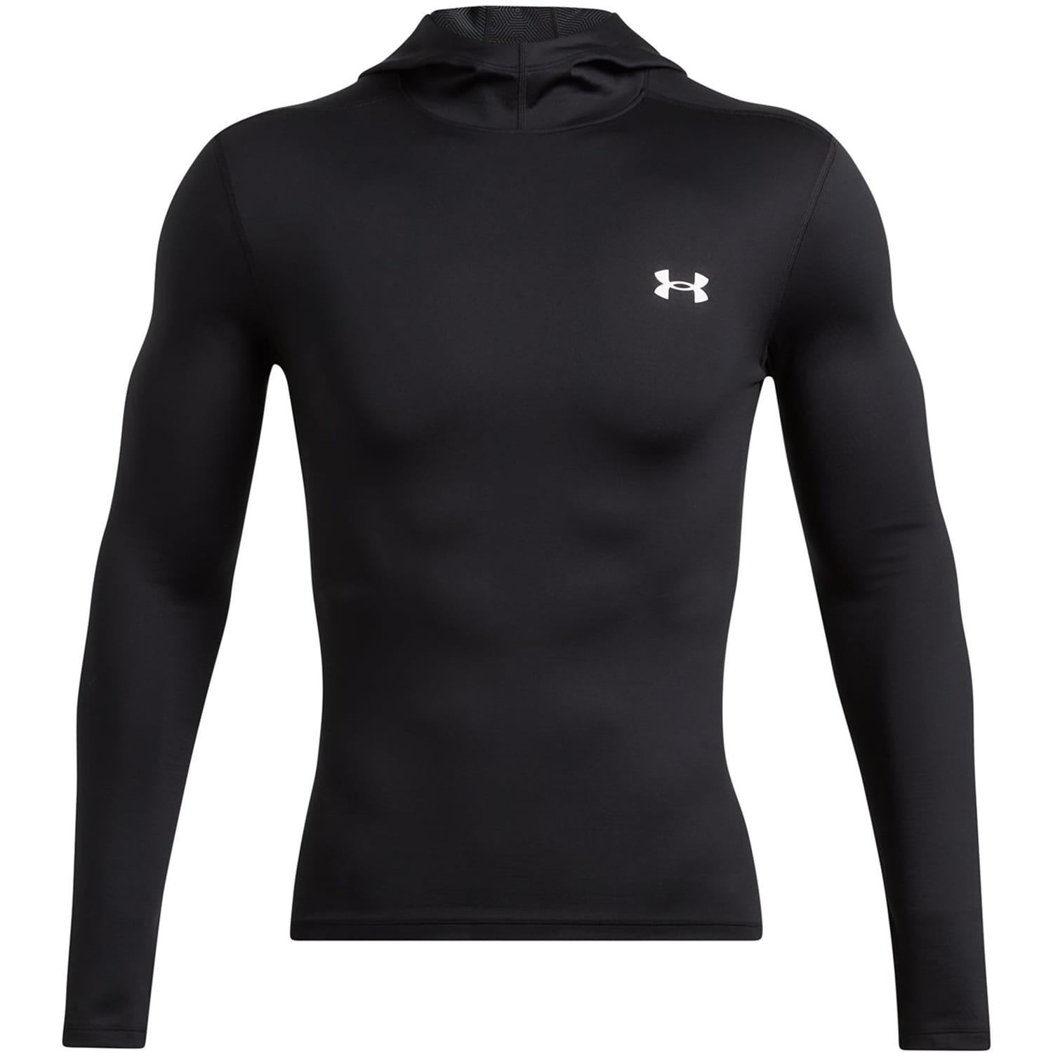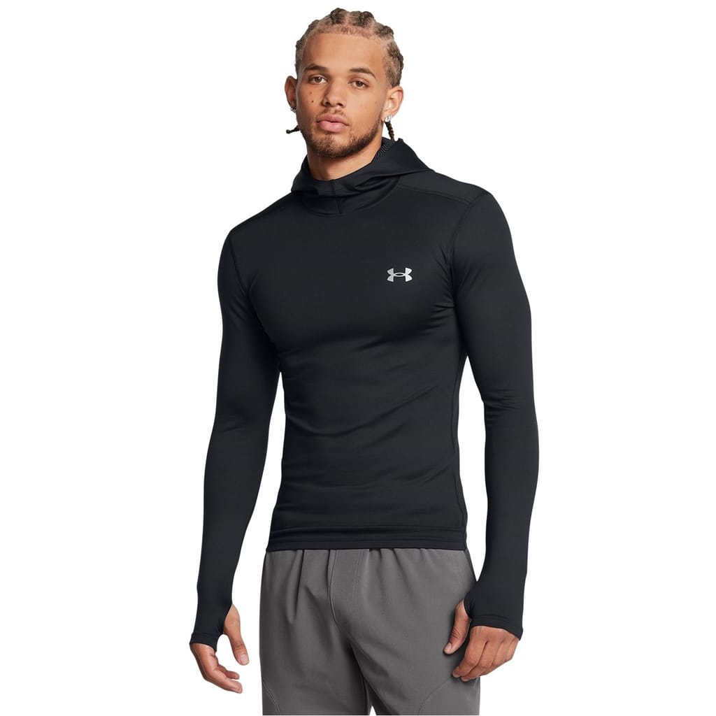 Under Armour tops feature a hooded neck and long sleeves, designed with a geometric pattern. This slim fit piece is crafted for performance, ensuring comfort and style. The thumbhole cuffs add a practical touch, making it ideal for active wear. -