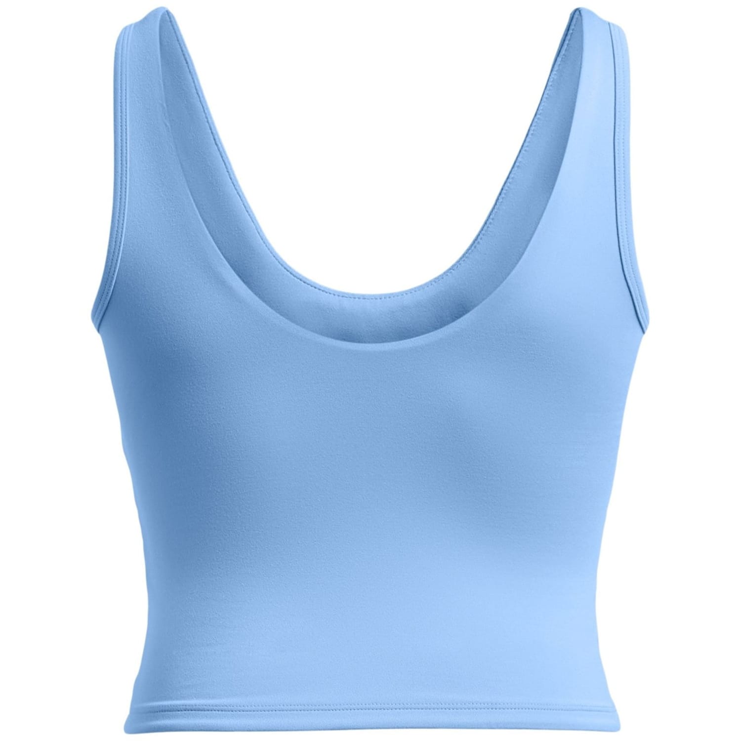 Discover the Under Armour Motion EMEA top, designed with a sleeveless style and a scoop neckline. This slim-fit, cropped top features a solid pattern, offering a sleek and modern look. Perfect for those who appreciate both style and functionality in their wardrobe. -