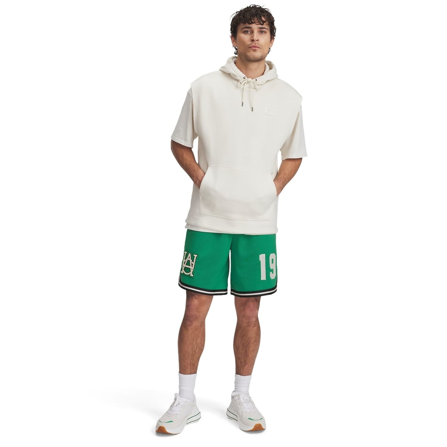Under Armour solid shorts are designed for both sporting activity and casual wear. Featuring a drawstring closure, these bermuda shorts offer a comfortable fit. The logo embellishment adds a touch of brand identity, making them a versatile addition to your wardrobe. -