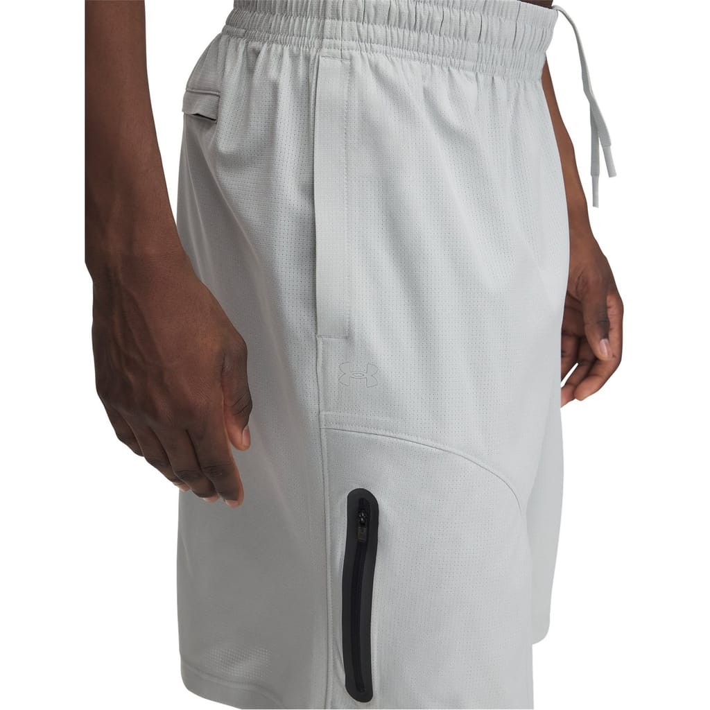 Under Armour presents these solid bermuda shorts, perfect for casual and athletic activities. Designed with a drawstring closure and featuring a zipped pocket, these performance shorts are ideal for running. Part of the casual collection, they offer both style and functionality. -