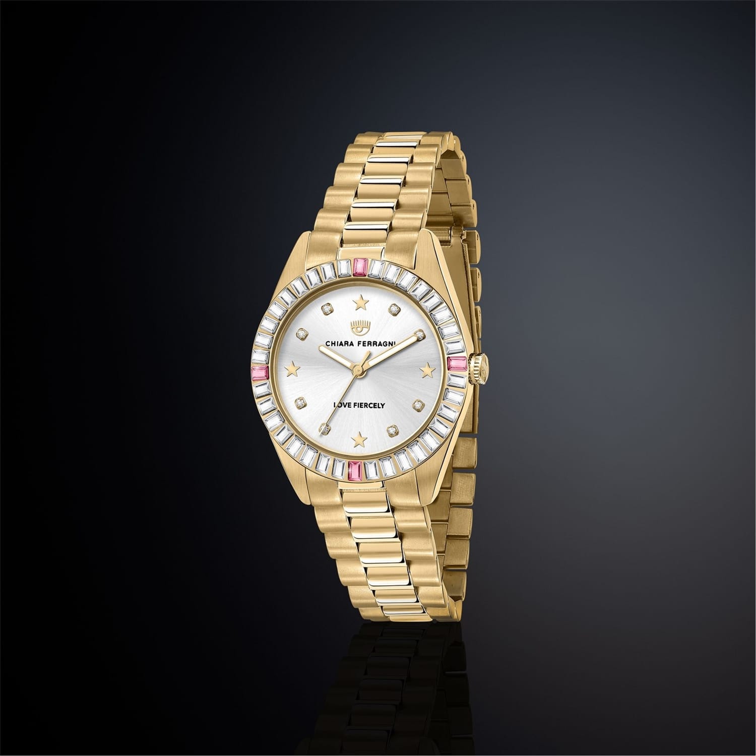 The Bold Analogue Quartz Watch showcases Chiara Ferragni's designer fashion aesthetic with modern proportions and clean lines. This timepiece merges precision timekeeping with styling elements characteristic of the brand.