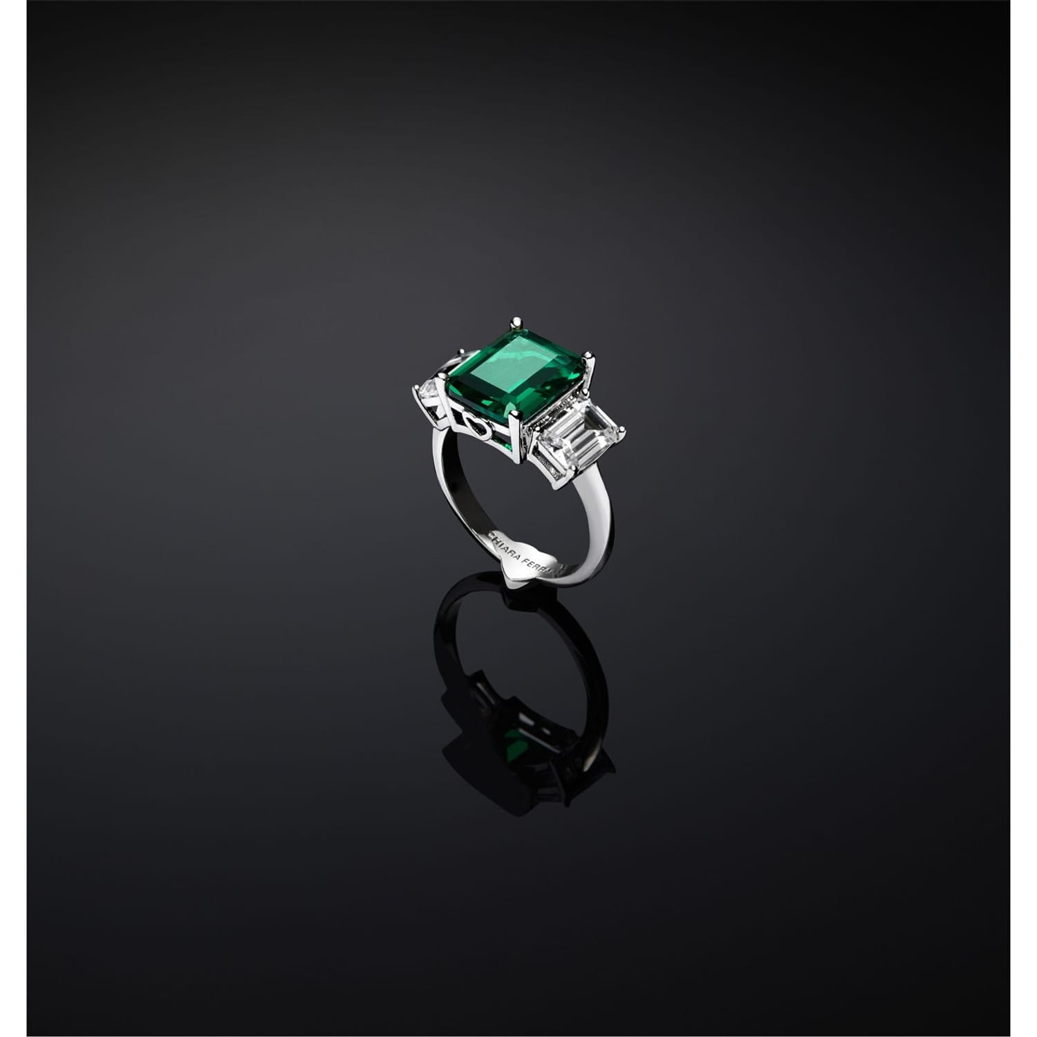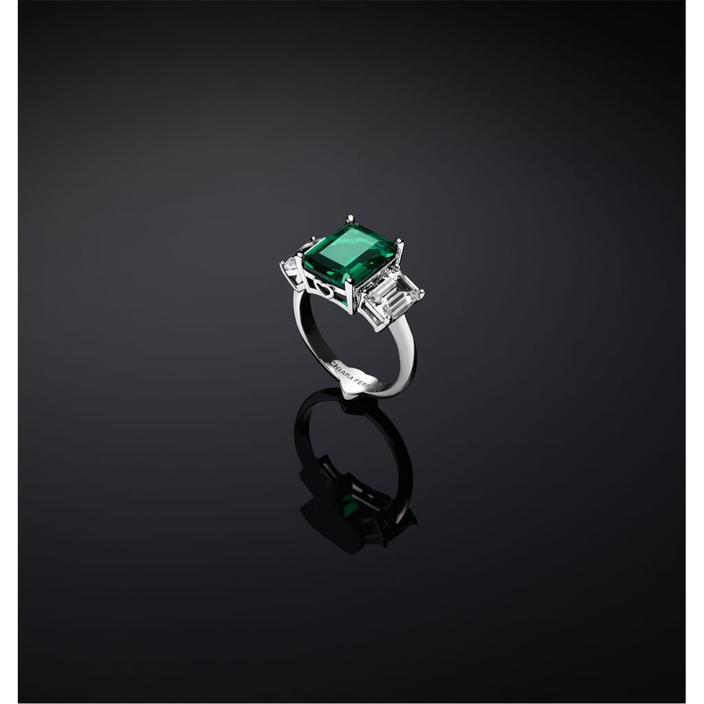 Discover the Chiara Ferragni square-shaped ring, a stunning piece of jewellery featuring a captivating emerald gemstone. This exquisite ring embodies elegance and sophistication, making it a perfect addition to any jewellery collection. -
