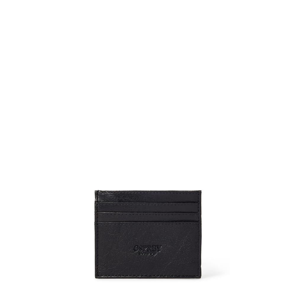 The Highland Leather Credit Card Holder is a sleek and smart choice for days when you're travelling light. The front features the OSPREY LONDON logo, blind embossed for a subtle finish, along with space for three bank cards. On the reverse, you’ll find a mesh ID window and an additional card slot, plus a top slip pocket, perfect for travel tickets. Comes presented in an OSPREY LONDON branded giftbox -