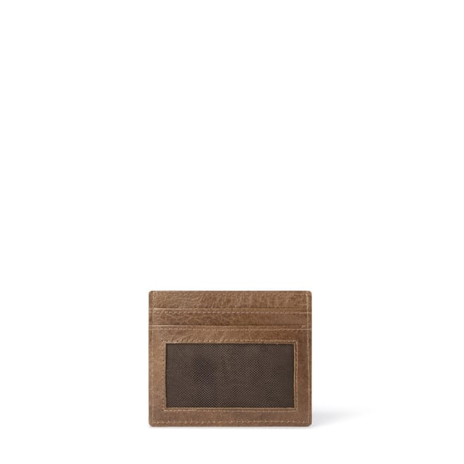 The Highland Leather Credit Card Holder is a sleek and smart choice for days when you're travelling light. The front features the OSPREY LONDON logo, blind embossed for a subtle finish, along with space for three bank cards. On the reverse, you’ll find a mesh ID window and an additional card slot, plus a top slip pocket, perfect for travel tickets. Comes presented in an OSPREY LONDON branded giftbox -