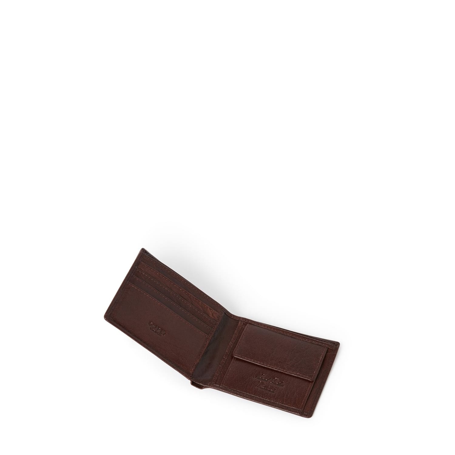 The Highland Billfold Leather Wallet with Credit Card Holder opens to reveal an organised interior, featuring a popper-fastening coin pocket on the right and space for four bank cards on the left. The front bears the OSPREY LONDON blind embossed logo for a subtle touch of refinement. Comes presented in an OSPREY LONDON branded giftbox. It makes a practical yet stylish choice. -