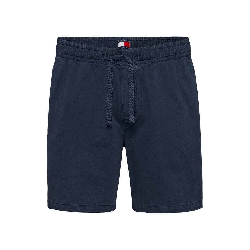 Discover the casual charm of Tommy Jeans shorts, featuring a solid pattern and crafted from twill woven fabric. These Bermuda shorts come with a convenient drawstring closure and are adorned with a subtle logo embellishment, making them a versatile addition to your casual collection. -
