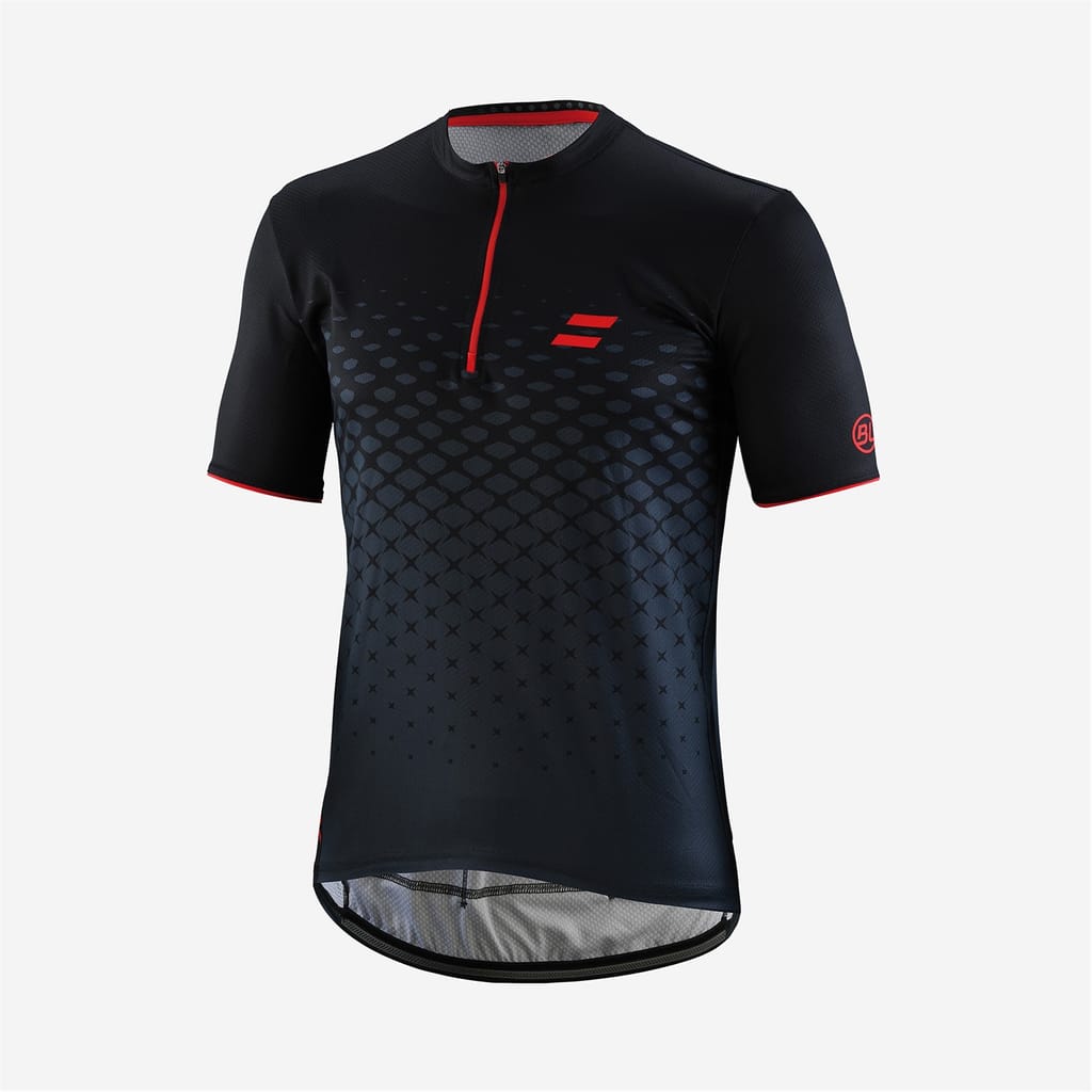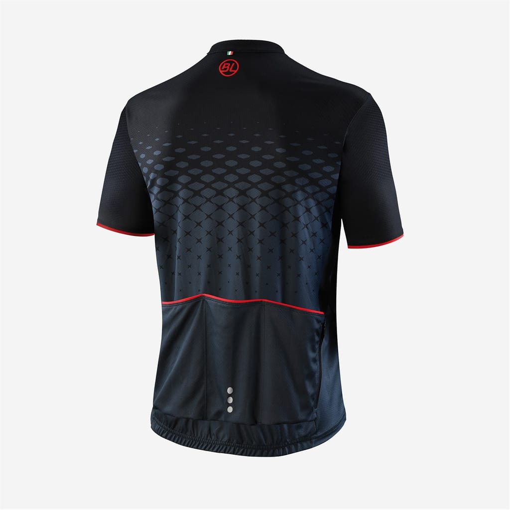 - RAYON men’s short sleeve jersey combines comfort and functionality, with antibacterial treatment and mesh side panels to enhance breathability. The practical rear pocket system, with three open pockets plus one zipped, ensures maximum load capacity for long rides.
