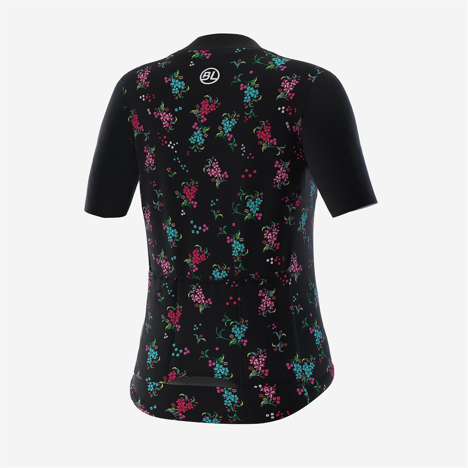 - GARDA women’s short sleeve jersey features a floral design and is made of light, breathable materials. The anatomical cut, combined with the elasticity of the fabrics, ensures a close and high-performance fit, enhanced by slightly elongated raw-cut sleeves. Versatile in use, it can be paired with both road shorts and MTB baggy shorts.
