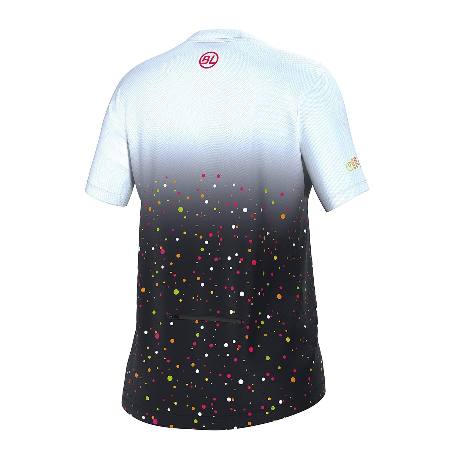 - MAROSTICA women’s short sleeve zipped jersey, designed for MTB, e-bike and off-road use, comes with a loose fit and short front zip, ideal for rides in freedom and total carefreeness. Made from breathable fabric, it stands out for its lively and imaginative design. The small central rear pocket is light and practical for carrying small items.