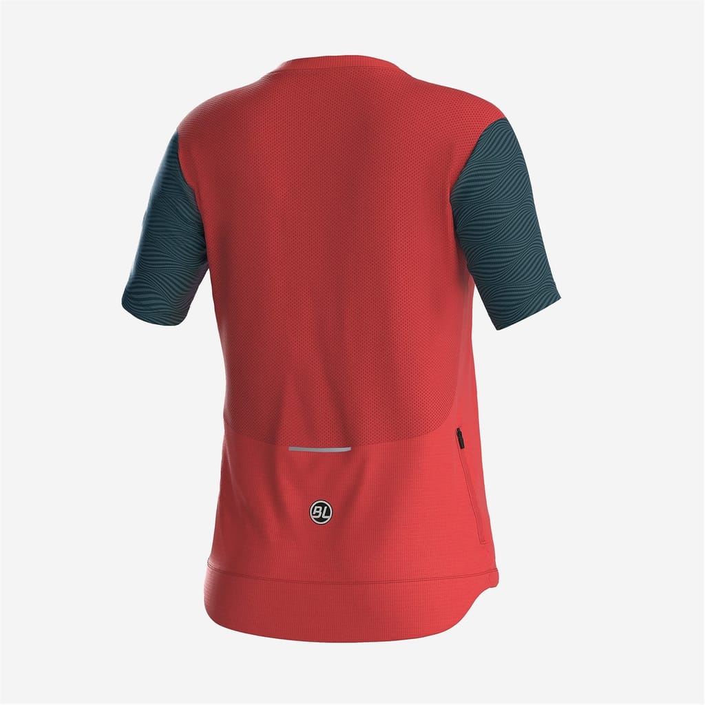 - ZOE women’s short sleeve MTB jersey is soft, light and breathable, featuring bright colors with contrasting sleeves. Designed with a loose fit and a dropped tail, it offers comfort and functionality for MTB and off-road rides. Equipped with a short front zip and a practical zipped rear pocket, it’s a stylish and versatile choice.