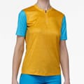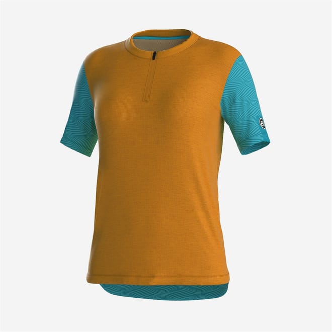 - ZOE women’s short sleeve MTB jersey is soft, light and breathable, featuring bright colors with contrasting sleeves. Designed with a loose fit and a dropped tail, it offers comfort and functionality for MTB and off-road rides. Equipped with a short front zip and a practical zipped rear pocket, it’s a stylish and versatile choice.