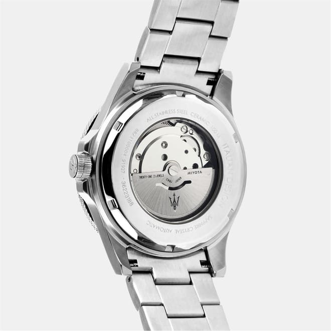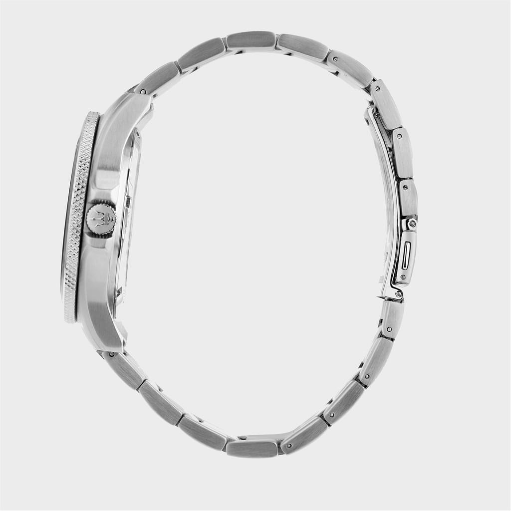 Discover the elegance of Maserati with this wrist watch, featuring a sleek black dial and an analogue display. The steel bracelet strap adds a touch of sophistication, while the 100m water resistance ensures durability. Perfect for those who appreciate timeless design and functionality in their accessories. -