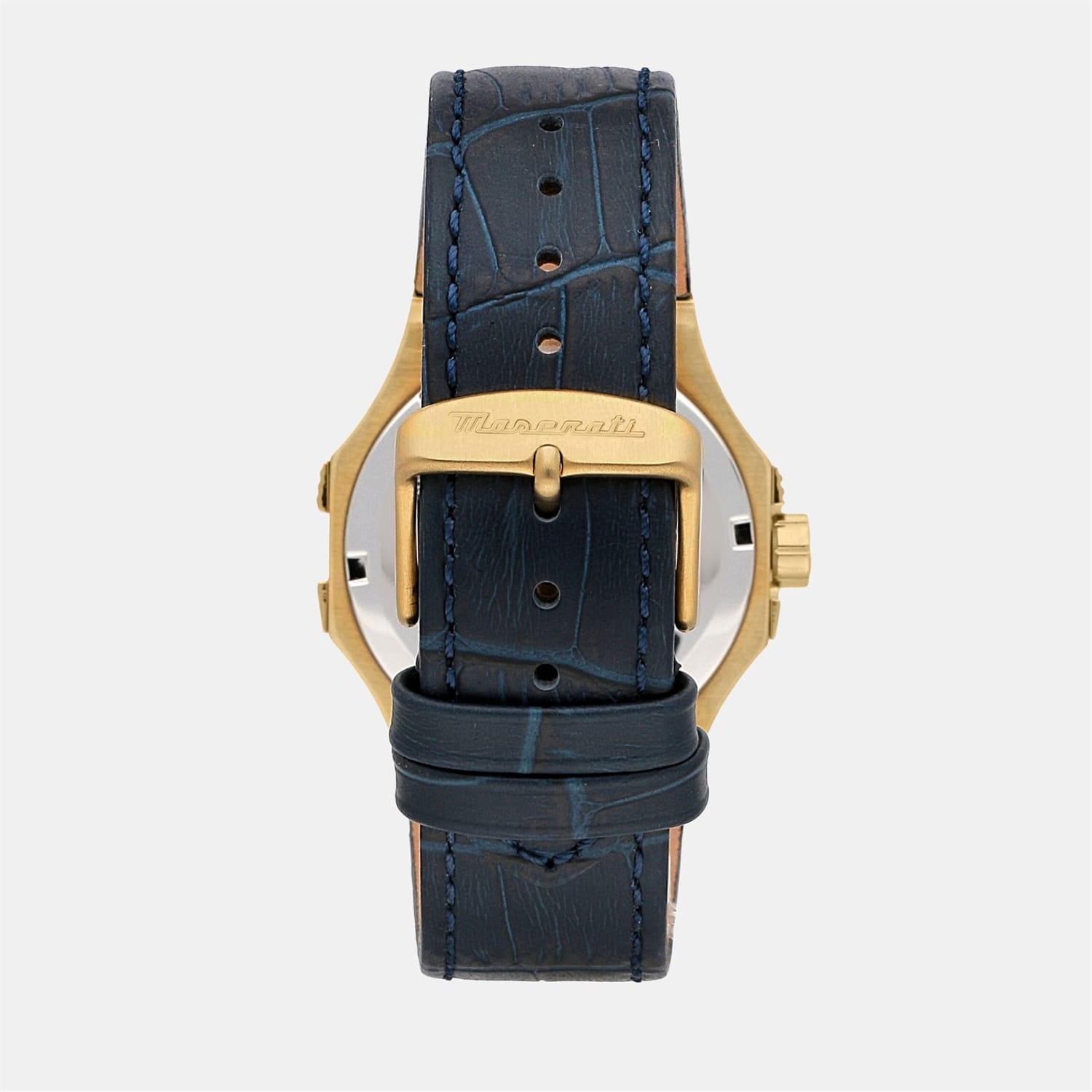 Discover the elegance of Maserati with this exquisite wrist watch. Featuring a striking blue dial, this analogue timepiece is a perfect blend of style and functionality. The leather strap adds a touch of sophistication, making it a timeless accessory for any occasion. -