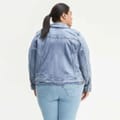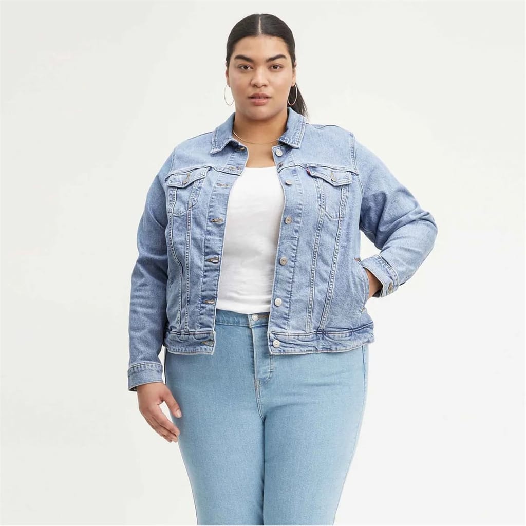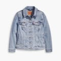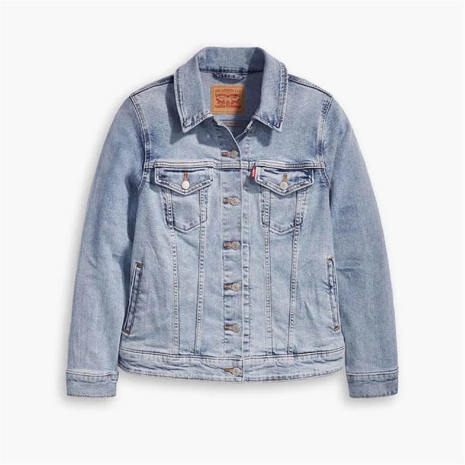 This Levi's denim jacket features a classic shirt collar and a button closure, offering a timeless appeal. Designed with a regular fit and a short length, it provides a comfortable and stylish look. The solid pattern and straight hemline add to its clean design, while the pockets offer practicality. -
