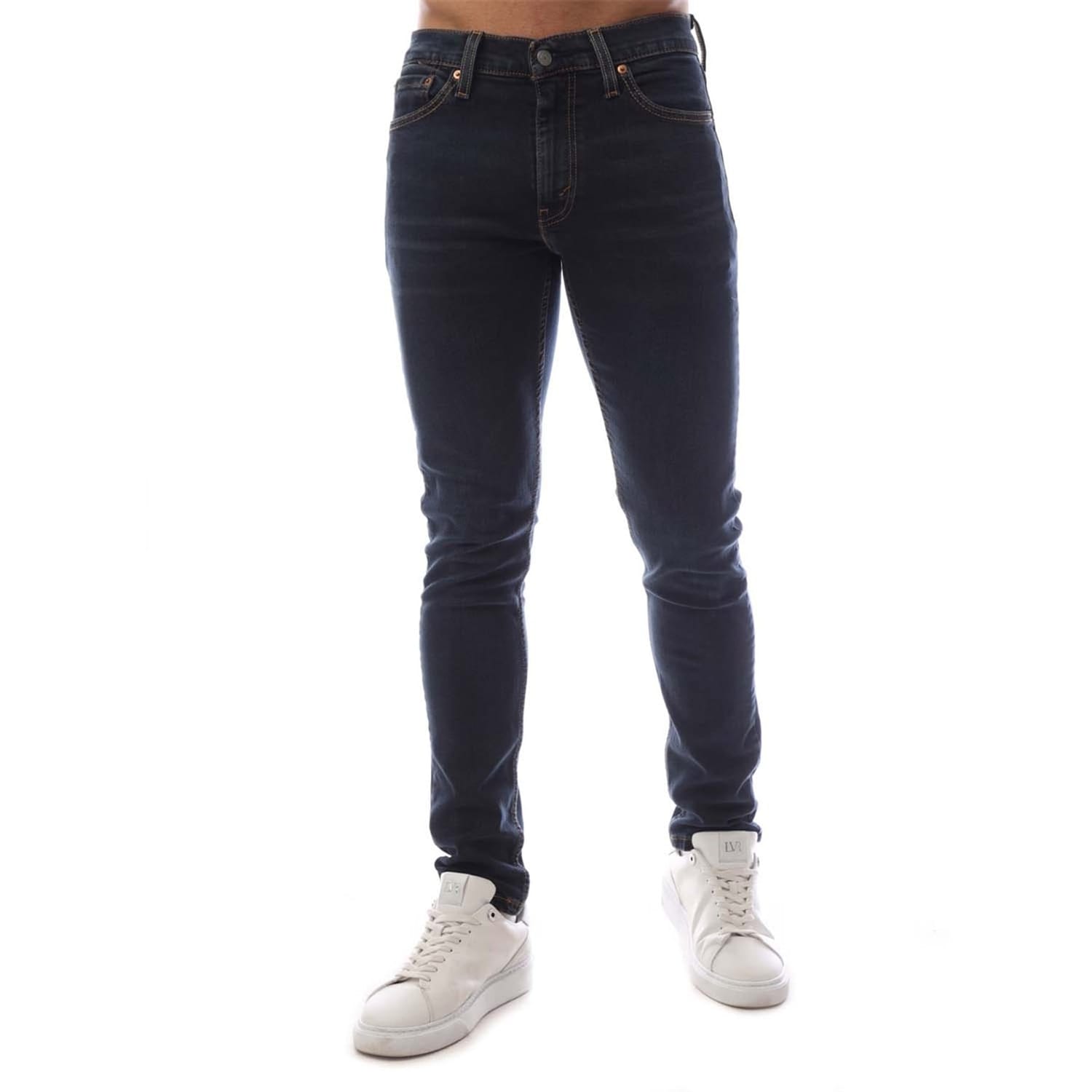 Levis jeans feature a slim fit with a classic five-pocket design. The jeans are equipped with a zip fly, front button, and belt loops for a secure fit. Embellished with front, back, and coin pockets, along with detailed stitching, these jeans offer both style and functionality. -