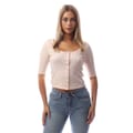 This Levi's top features a cropped length with a square neck and three-quarter sleeves. The solid pattern is complemented by pearl embellishments, adding a touch of elegance. Designed with a regular fit, it includes a button closure for a classic finish. -