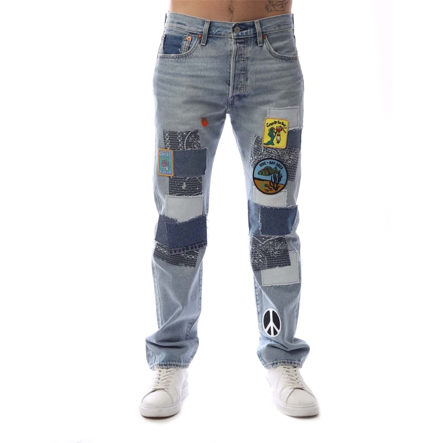 Discover the Levis jeans from the surf collection, featuring a straight fit and a distinctive patchwork pattern. These jeans boast a five-pocket design with patch and patch pocket embellishments. The closure includes a zip fly, front button, and belt loops, ensuring a secure fit. Perfect for those seeking a blend of style and functionality. -