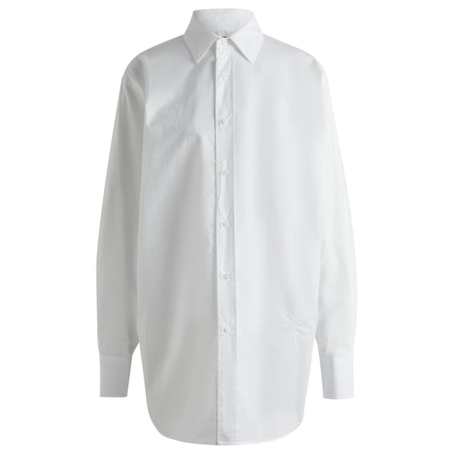This Boss top features a solid pattern with long sleeves and a regular fit. It is designed with a button closure and a point collar, complemented by barrel cuffs for a classic look. -