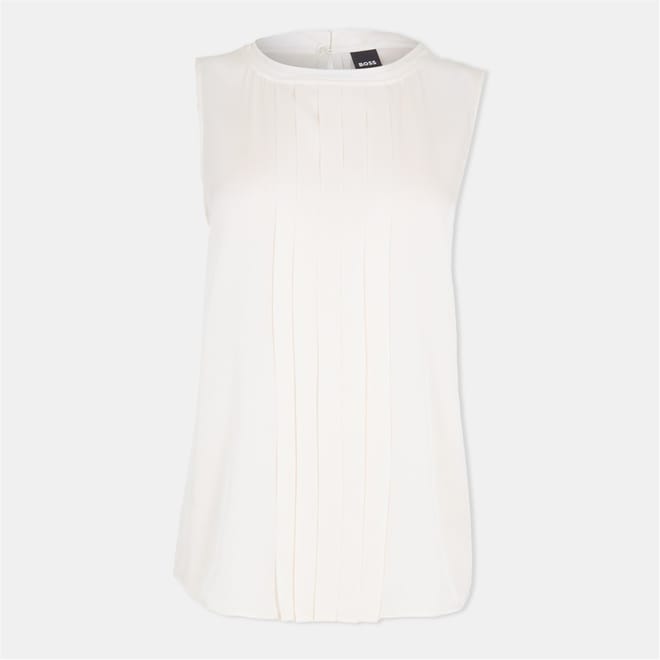 This Boss top features a sleek sleeveless design with a jewel neck, offering a regular fit. The solid pattern adds a touch of sophistication, making it a versatile addition to any wardrobe. -
