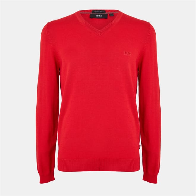 This Boss top features a solid pattern with a V-neck design, offering a classic look. Crafted from knit material, it ensures comfort and style. The long sleeves are complemented by ribbed cuffs, providing a regular fit that is both versatile and timeless. -