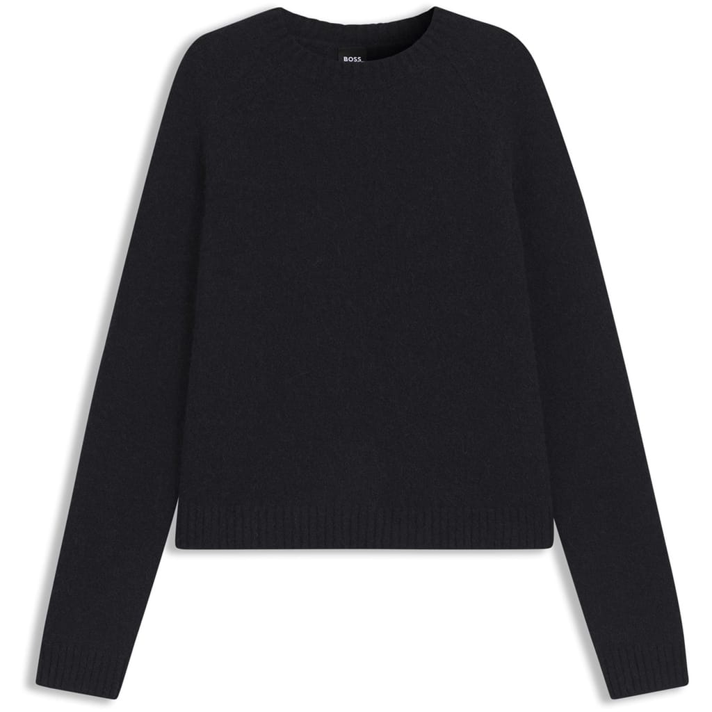 This Boss top features a solid pattern with a crew neck and long sleeves. Crafted from knit material, it offers a regular fit for comfortable wear. The design is enhanced with a ribbed collar and ribbed cuffs, adding a touch of detail. A subtle logo embellishment completes the look, making it a versatile addition to your wardrobe. -