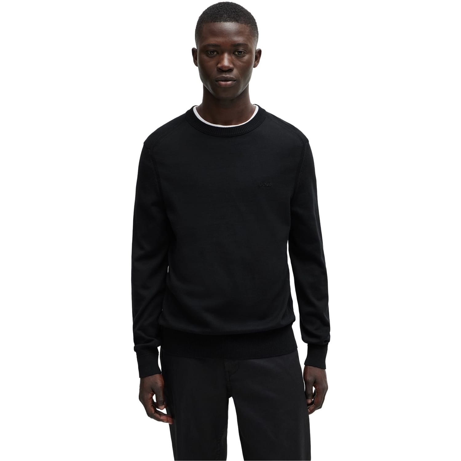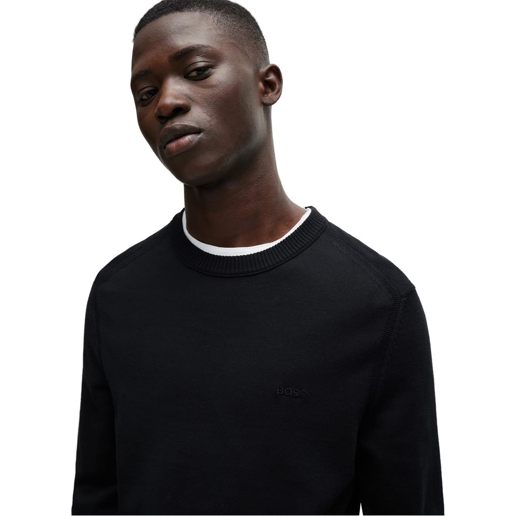 This Boss top features a solid knit design with a rib crew neck and long sleeves. The regular fit ensures comfort, while the ribbed collar and cuffs add a touch of detail. -