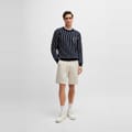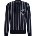 This Boss top features a regular fit with a classic crew neck and long sleeves. The vertical stripe pattern adds a touch of style, while the knit fabric ensures comfort. It is designed with ribbed cuffs and a ribbed collar for a refined finish. -